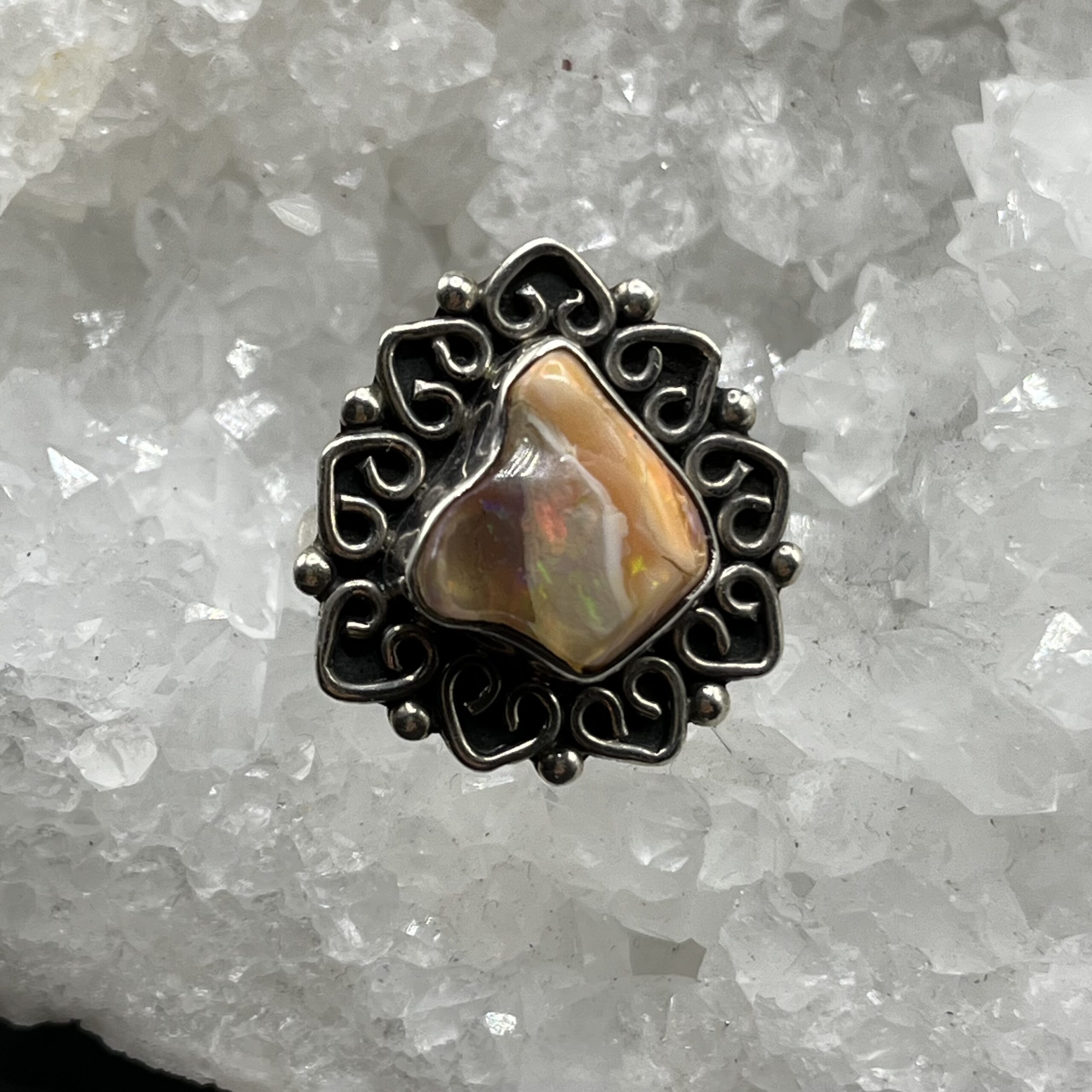 Bague argent et Pierre Opale du Mexique « Rosa de mi Corazòn »